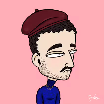 Collection Depressed Citizens Artist Juls Description ART. No team, no project, no future. Depressed Citizens is an urban & existential Art expression on Ordinals. In a parallel universe, "THEI" control us. DC unites against toxic society, encouraging critical thinking. 100% hand made collection that took Juls more than 6 months of daily work. Name Citizen#631 Origin Caucasian non hispanic Gender Man Necklace Gold layered necklace Hat Burgundy beret Mustache Beard Handlebar & shaved beard Glasses No Glasses Earrings Rook hoop Hair Style Short curly with gel Clothes Deep blue turtleneck sweater Tattoo No Tattoo Star Background Without stars