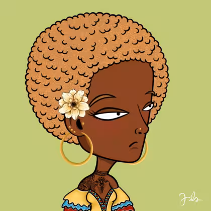Collection Depressed Citizens Artist Juls Description ART. No team, no project, no future. Depressed Citizens is an urban & existential Art expression on Ordinals. In a parallel universe, "THEI" control us. DC unites against toxic society, encouraging critical thinking. 100% hand made collection that took Juls more than 6 months of daily work. Name Citizen#88 Origin Unique Gender Woman Necklace No Necklace Hat No Hat Mustache Beard No beard Glasses No Glasses Earrings Tragus star earring Hair Style Afro Clothes Traditional Caribbean dress Tattoo Maya tattoo Star Background Without stars