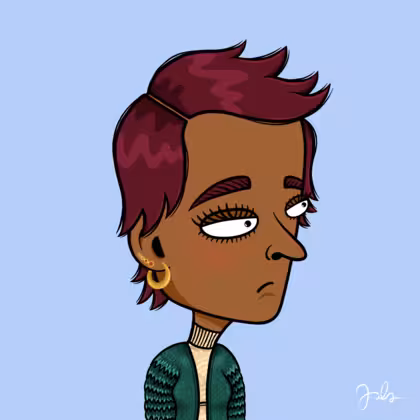 Collection Depressed Citizens Artist Juls Description ART. No team, no project, no future. Depressed Citizens is an urban & existential Art expression on Ordinals. In a parallel universe, "THEI" control us. DC unites against toxic society, encouraging critical thinking. 100% hand made collection that took Juls more than 6 months of daily work. Name Citizen#489 Origin Hispanic Gender Woman Necklace No Necklace Hat No Hat Mustache Beard No beard Glasses No Glasses Earrings Upper lobe strass Hair Style Shaggy short Clothes Beige turtleneck sweater Tattoo No Tattoo Star Background Without stars